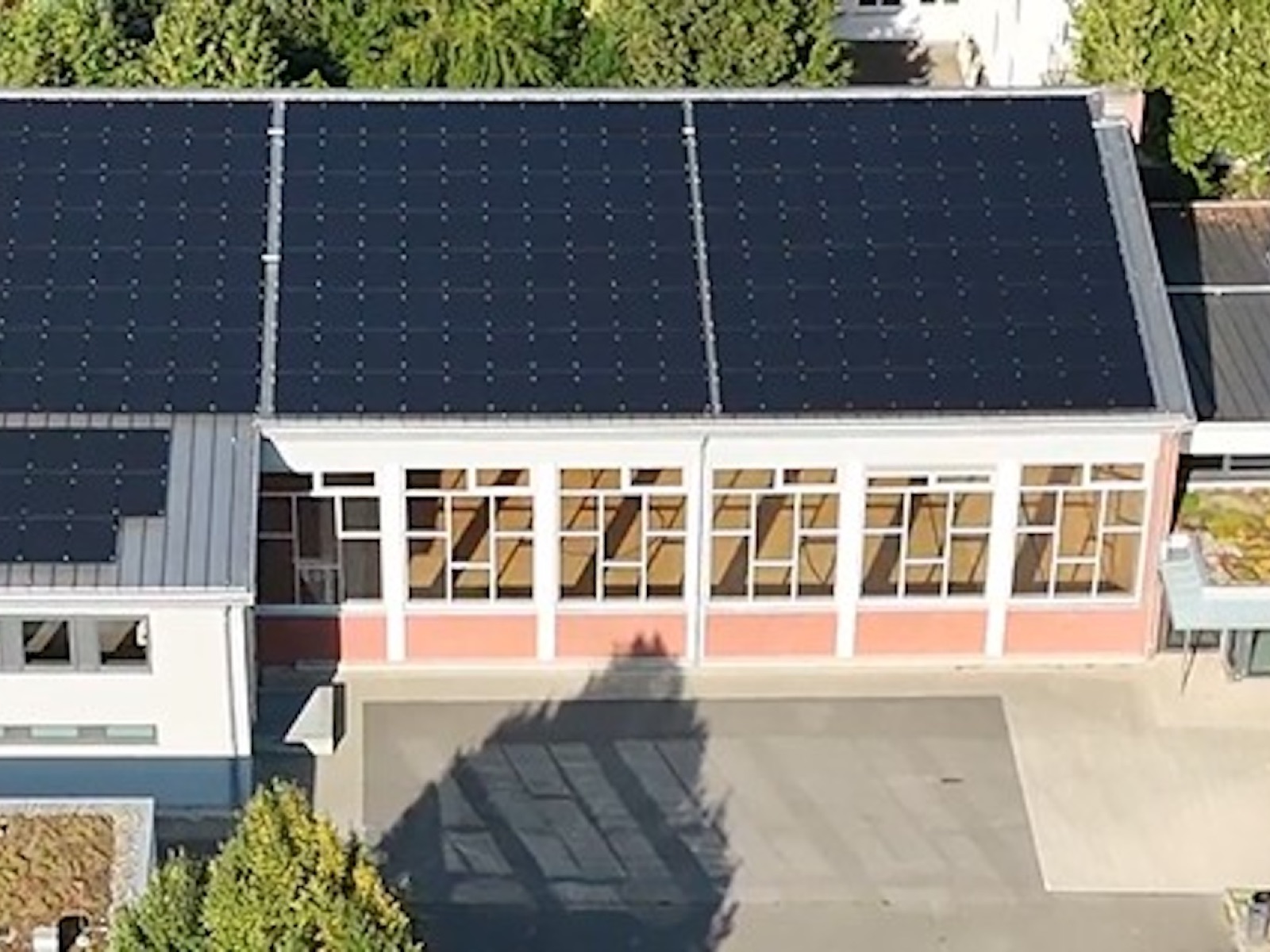 Auf der Stadthalle Neuenstadt errichtete die BERN in Eigenregie eine Photovoltaik-Anlage mit 99,98 kWp.